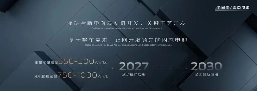 11月17日,在2023廣州車展上,長安汽車發布了長安汽車電池規劃并公布了長安電池品牌——“金鐘罩”。在固態/半固態電池領域,長安汽車推進全新電解質材料開發、關鍵工藝開發,將不晚于2027年推動重量能量密度達到350-500瓦時/千克、體積能量密度750-1000瓦時/升,并逐步量產應用,2030年實現全面普及,徹底解決用戶里程焦慮。