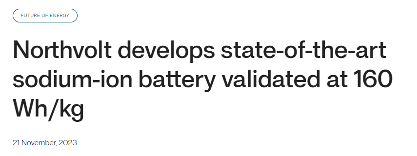 中國粉體網訊 當地時間周二(11月21日),瑞典電池制造商Northvolt在官網宣布,其推出一款先進的鈉離子電池。經實驗室驗證,這款電池的能量密度超過160瓦時/千克。