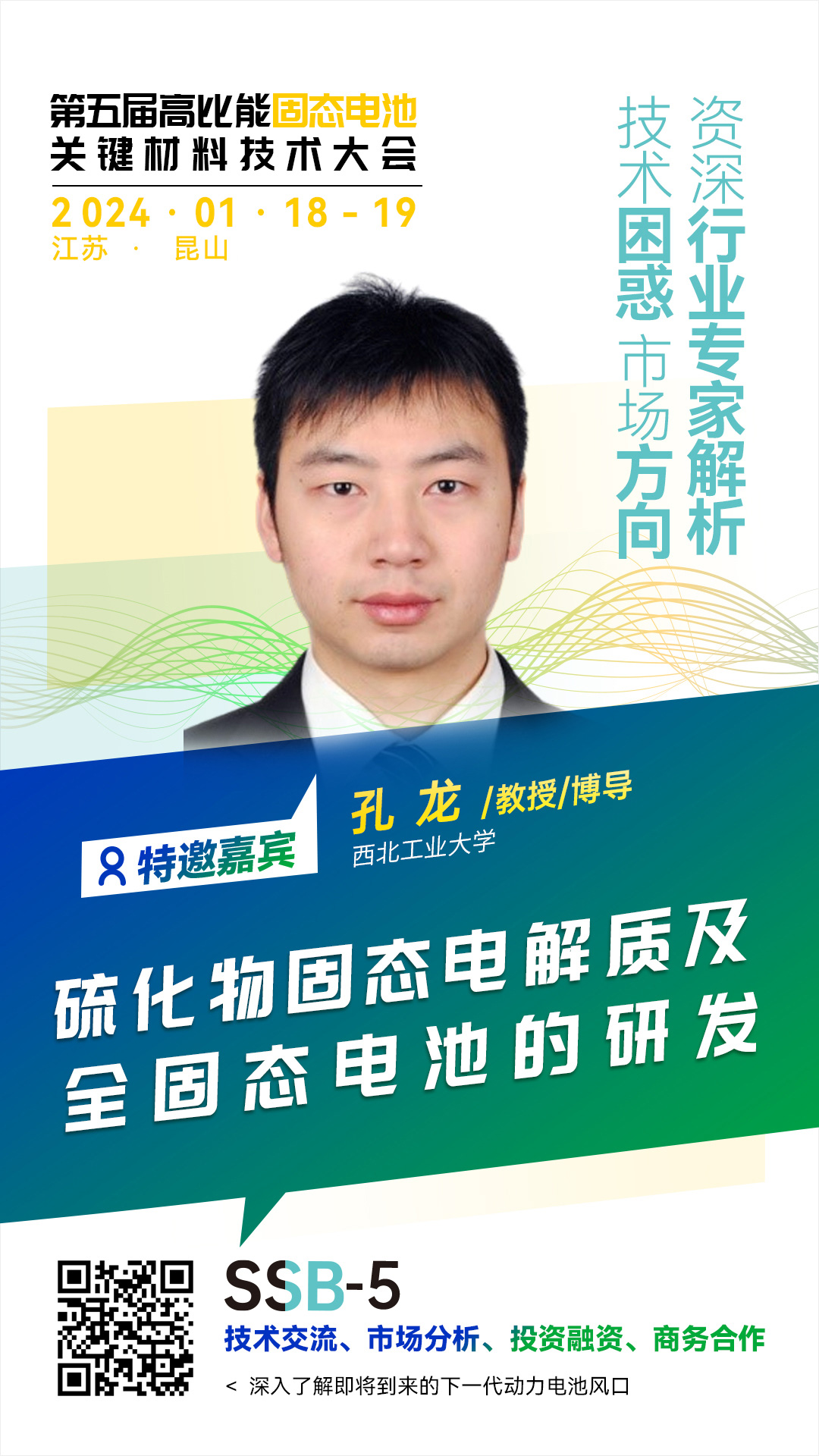 針對固態電池相關的技術、材料、市場及產業等方面的問題,中國粉體網將在昆山舉辦第五屆高比能固態電池關鍵材料技術大會。為致力于固態電池技術開發的企業,科研院校,以及電動車、儲能、特種應用等終端企業提供信息交流的平臺,開展產、學、研合作,共同推動行業發展。屆時,西北工業大學孔龍教授將作題為《硫化物固態電解質及全固態電池的研發》的報告。報告將從高品質、大批量合成硫化物固態電解質,硫化物固態電解質在全固態電池中的應用以及遇到的挑戰進行匯報,并從材料和電芯角度的思考與設計方案展開介紹。
