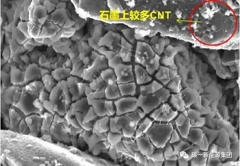 常規硅負極:大量CNT分布在石墨表面,少量CNT在硅表面