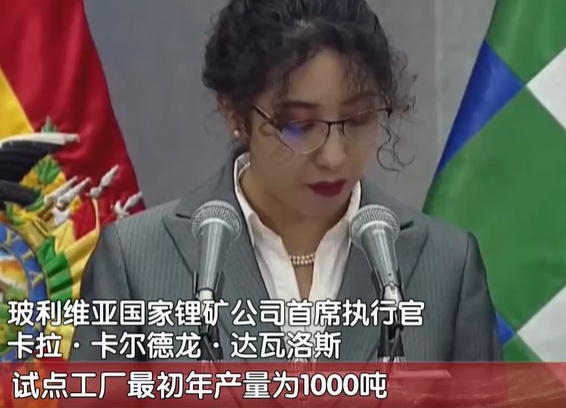 玻利維亞國家鋰礦公司首席執行官卡拉·卡爾德龍·達瓦洛斯在發言中表示,試點工廠將分三期建設,首期年產量為1000噸,二期年產量增加8000噸,三期年產量再增加5000噸,預計總計鋰年產量為14000噸。