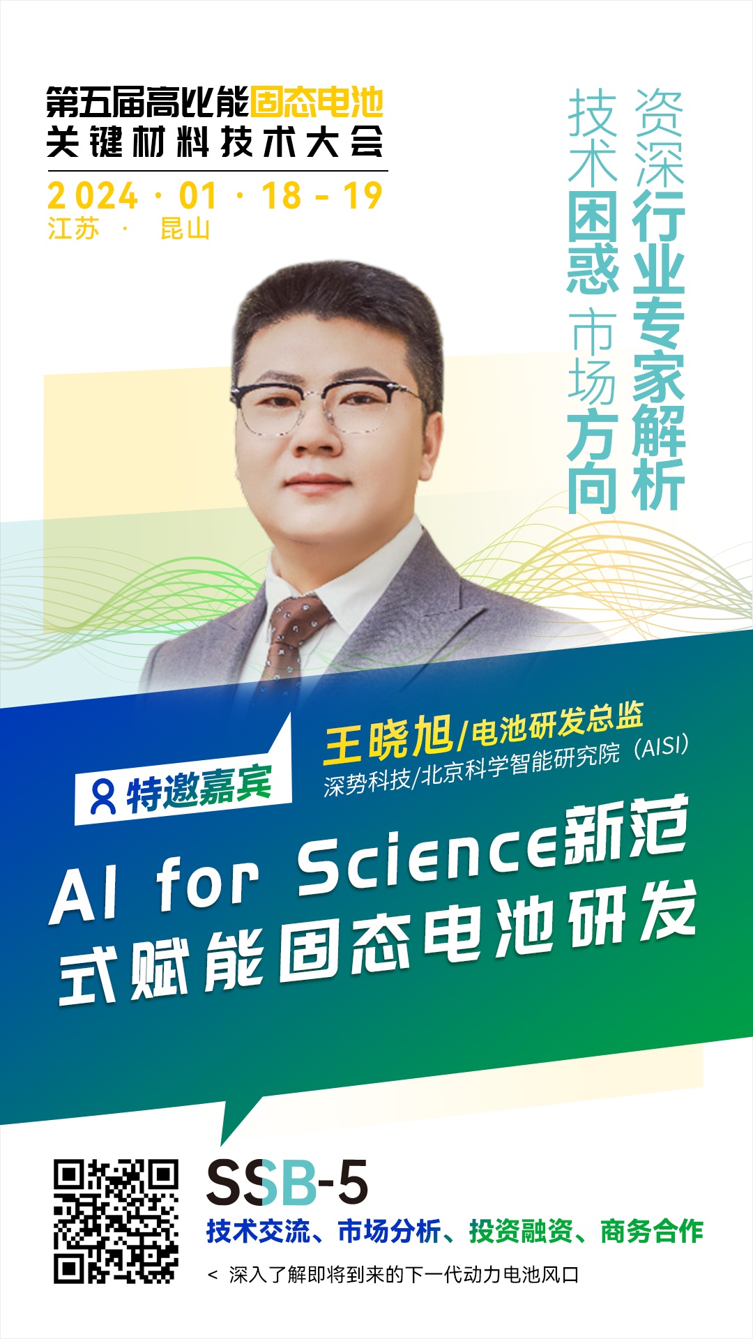 針對固態電池相關的技術、材料、市場及產業等方面的問題,中國粉體網將在昆山舉辦第五屆高比能固態電池關鍵材料技術大會。為致力于固態電池技術開發的企業,科研院校,以及電動車、儲能、特種應用等終端企業提供信息交流的平臺,開展產、學、研合作,共同推動行業發展。屆時,深勢科技/北京科學智能研究院電池研發總監王曉旭將作題為《AI for Science新范式賦能固態電池研發》的報告。