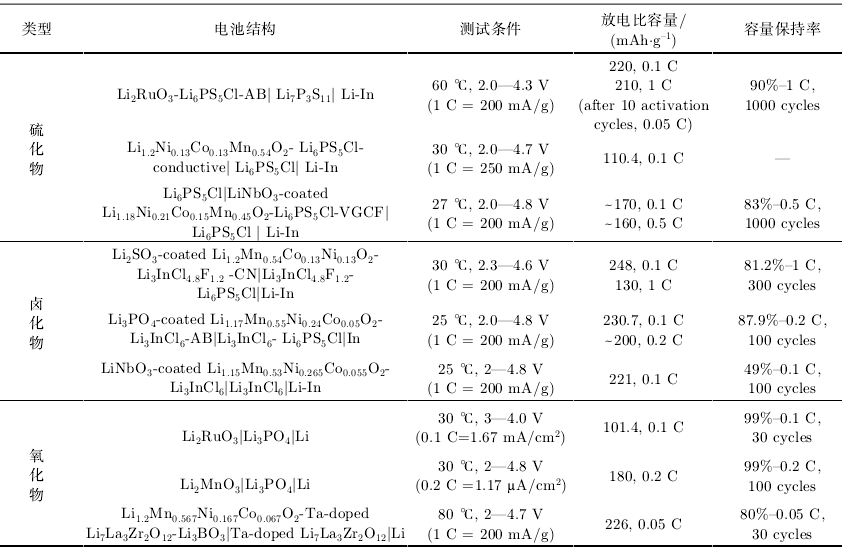 但是,在電池工作過程中,晶格氧釋放和表面氧的氧化作用,仍然嚴重破壞了富鋰正極/鹵化物電解質的界面穩定性,需要采取表面修飾的措施加以保護,如LiNbO3,Li4Ti5O12和Li2MoO4等。