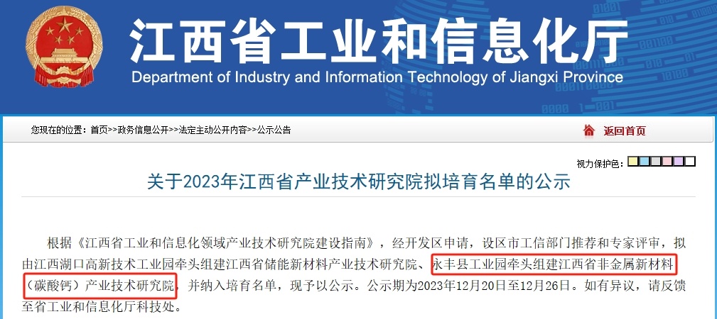 中國粉體網訊 根據《江西省工業和信息化領域產業技術研究院建設指南》,經開發區申請,設區市工信部門推薦和專家評審,擬由江西湖口高新技術工業園牽頭組建江西省儲能新材料產業技術研究院、永豐縣工業園牽頭組建江西省非金屬新材料(碳酸鈣)產業技術研究院,并納入培育名單,現予以公示。2023年12月20日至12月26日。如有異議,請反饋至省工業和信息化廳科技處。