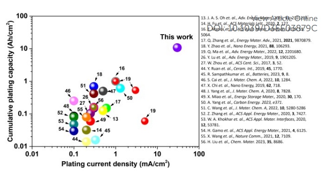 近日,美國(guó)馬里蘭大學(xué)Eric D. Wachsman團(tuán)隊(duì)通過(guò)開發(fā)高導(dǎo)電性 Zn2+ 和 Mg2+ 雙摻雜 Na3Zr2SiPO12(NASICON)固體電解質(zhì),并制造涂有納米級(jí) ZnO 層的三維多孔-密孔結(jié)構(gòu)(具有 25 μm 的超薄致密隔膜),實(shí)現(xiàn)了 3.5 Ω cm2 的極低陽(yáng)極界面電阻。因此,在室溫?zé)o堆疊壓力條件下,臨界電流密度達(dá)到了創(chuàng)紀(jì)錄的 30 mA/cm2,鈉循環(huán)累積容量也達(dá)到了 10.8 Ah/cm2。此外,作為概念驗(yàn)證,在致密多孔雙層電解質(zhì)上用 Na3V2(PO4)3 陰極與鈉金屬陽(yáng)極組裝了軟包電池,并在室溫下無(wú)施加疊層壓力下以實(shí)現(xiàn)了2C 循環(huán)。這種獨(dú)特的3D電解質(zhì)結(jié)構(gòu)有望實(shí)現(xiàn)高能量密度和商業(yè)上可行的固態(tài)鈉電池。該成果⟪ High-rate cycling in 3D dual-doped NASICON architectures toward room-temperature sodium-metal-anode solid-state batteries ⟫為題發(fā)表在⟪Energy & Environmental Science⟫。