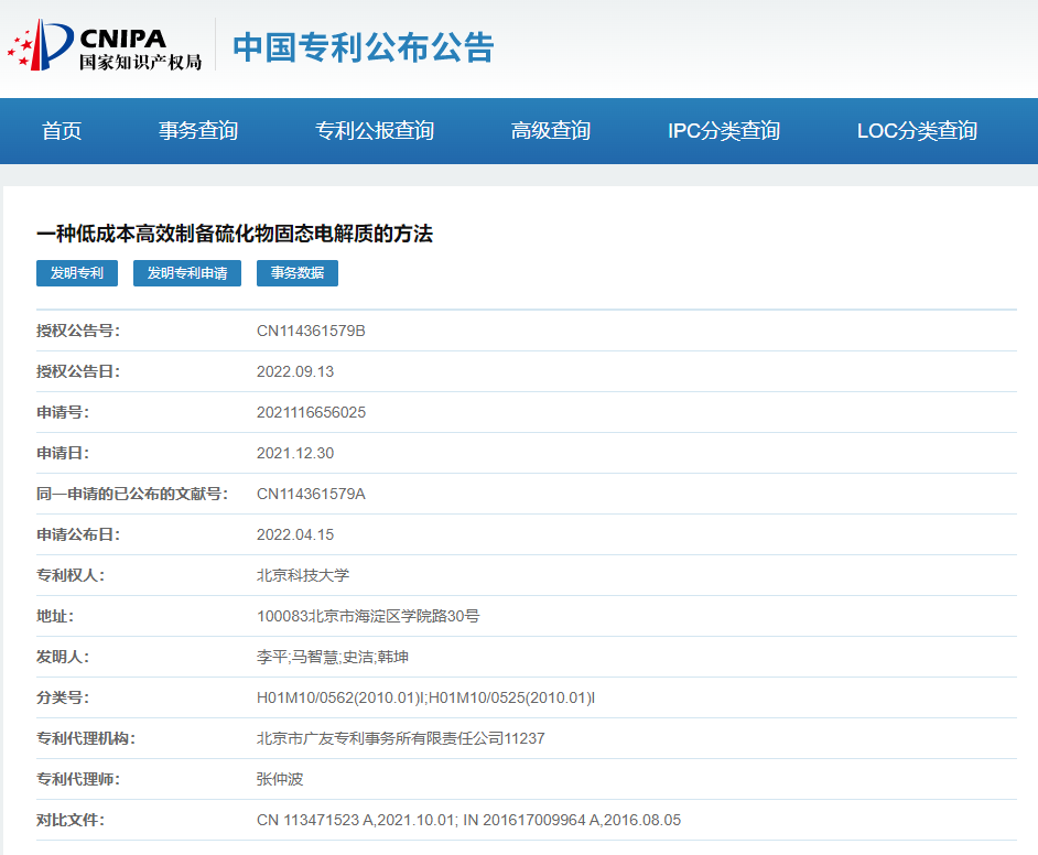 2021年12月30日以《一種低成本高效制備硫化物固態(tài)電解質(zhì)的方法》為名申請了發(fā)明專利。制備方法包括如下步驟: