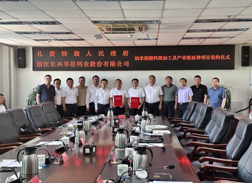 8月10日,扎賚特旗人民政府與浙江長興華星鈣業股份有限公司舉行納米碳酸鈣深加工及產業鏈延伸項目簽約儀式。