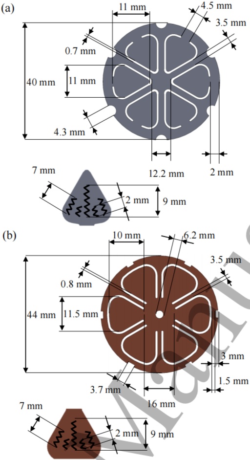 正負極兩個圓盤都表現出六角形對稱,正極盤在外環處連接,而負極盤的連接器則向中心連接。負極盤的外環連接到電池殼體,而對于正極盤,中心是超聲波焊接到電池的正極端。因此,這兩個磁盤可以充當補償元件或彈簧。每個連接器通過五個寬度約為0.5 mm的激光焊接的鋸齒形接縫連接到有凹槽和折疊的電極上,接縫的長度如圖6所示。此外,一個厚度為0.65 mm的塑料盤作為正極盤和電池外殼之間的絕緣屏障。