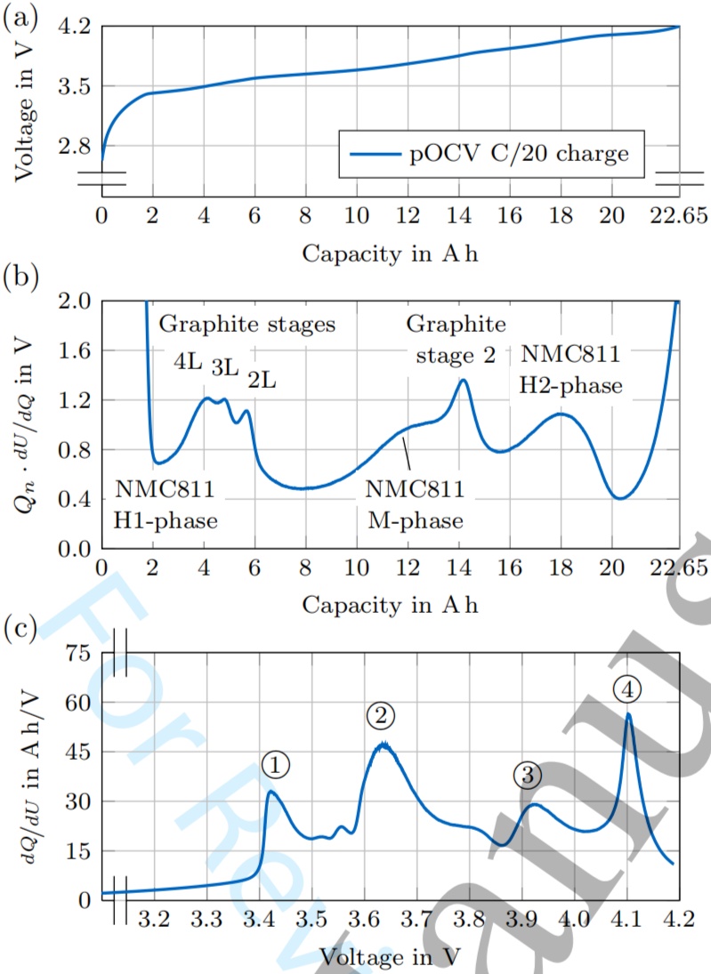 圖12. 單個電池(ID 536/828)的pOCV、DVA和ICA測試。