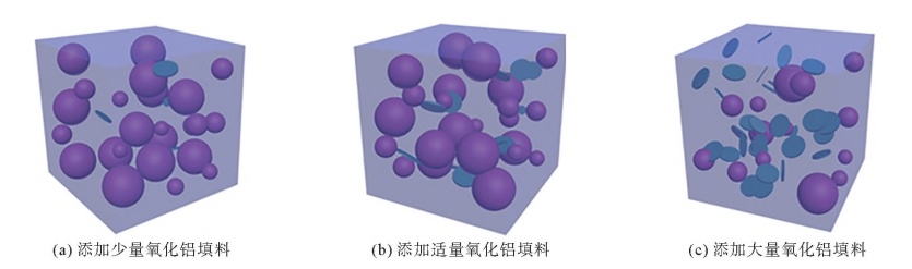 球形氮化硼和片狀氧化鋁填料在硅油中的分布示意圖