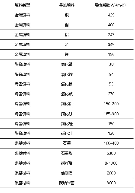金屬填料的導熱系數高、熱穩定性優異、熱膨脹系數低,其中液態金屬能表現出金屬化合物的延展性和導電性,同時具有液體流體的流動性和順應性。金屬填料的缺點也很明顯,不耐腐蝕,密度過高,與聚合物的相容性差不能充分發揮金屬的高導熱性能。
