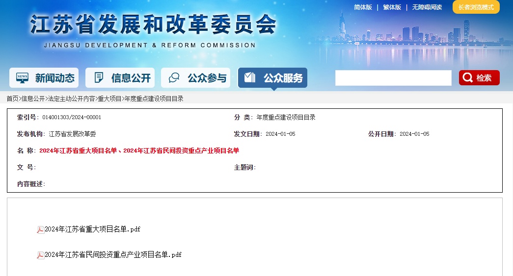 中國(guó)粉體網(wǎng)訊 近日,江蘇省發(fā)改委發(fā)布《2024年江蘇省重大項(xiàng)目名單、2024年江蘇省民間投資重點(diǎn)產(chǎn)業(yè)項(xiàng)目名單》。其中重大項(xiàng)目510個(gè),將實(shí)施項(xiàng)目年度計(jì)劃投資6408億元;省民間投資重點(diǎn)產(chǎn)業(yè)項(xiàng)目共200個(gè)年度計(jì)劃投資652.2億元。