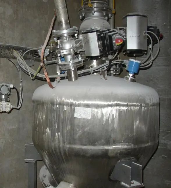物料進入倉泵后,一次輸送氣進入倉泵,對物料充氣與加壓,將物料壓入輸送管道。在輸送管道的入口處引入二次輸送氣,調(diào)節(jié)輸送固氣比,將物料加速與輸送。