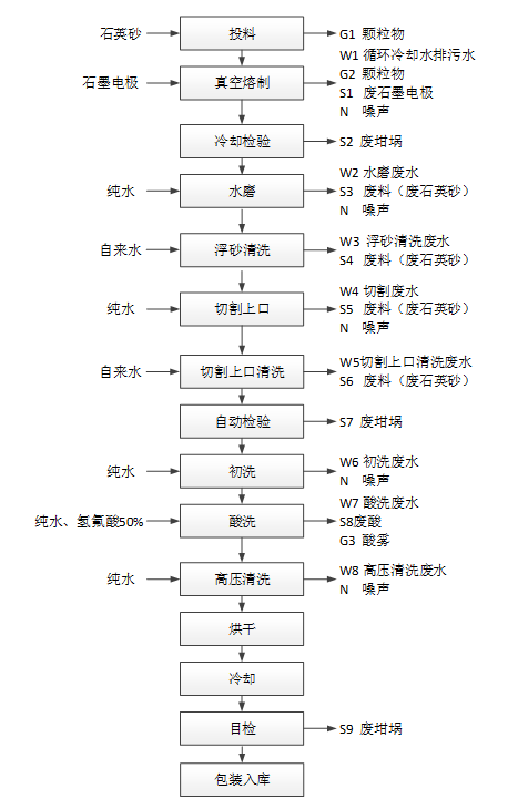 據悉,江蘇美瑞克新材料科技有限公司位于江蘇省徐州市沛縣經濟開發區,擬投資2.3億建設年產10萬只光伏及半導體級大直徑石英坩堝制造項目。項目生產工藝流程為:投料→真空熔制→冷卻檢驗→水磨→浮砂清洗→切割上口→切割上口清洗→自動檢驗→初洗→酸洗→高壓清洗→烘干冷卻→目檢→包裝入庫。