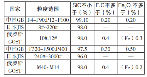 中國國家標準GB與日本JIS、俄羅斯GOST標準綠碳化硅化學成分對比