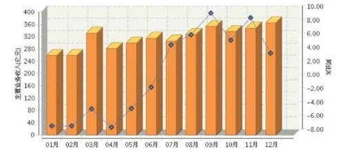 2023年全國塑料薄膜制造行業月度營業收入及同比