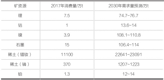 新能源汽車所需關鍵礦產資源量