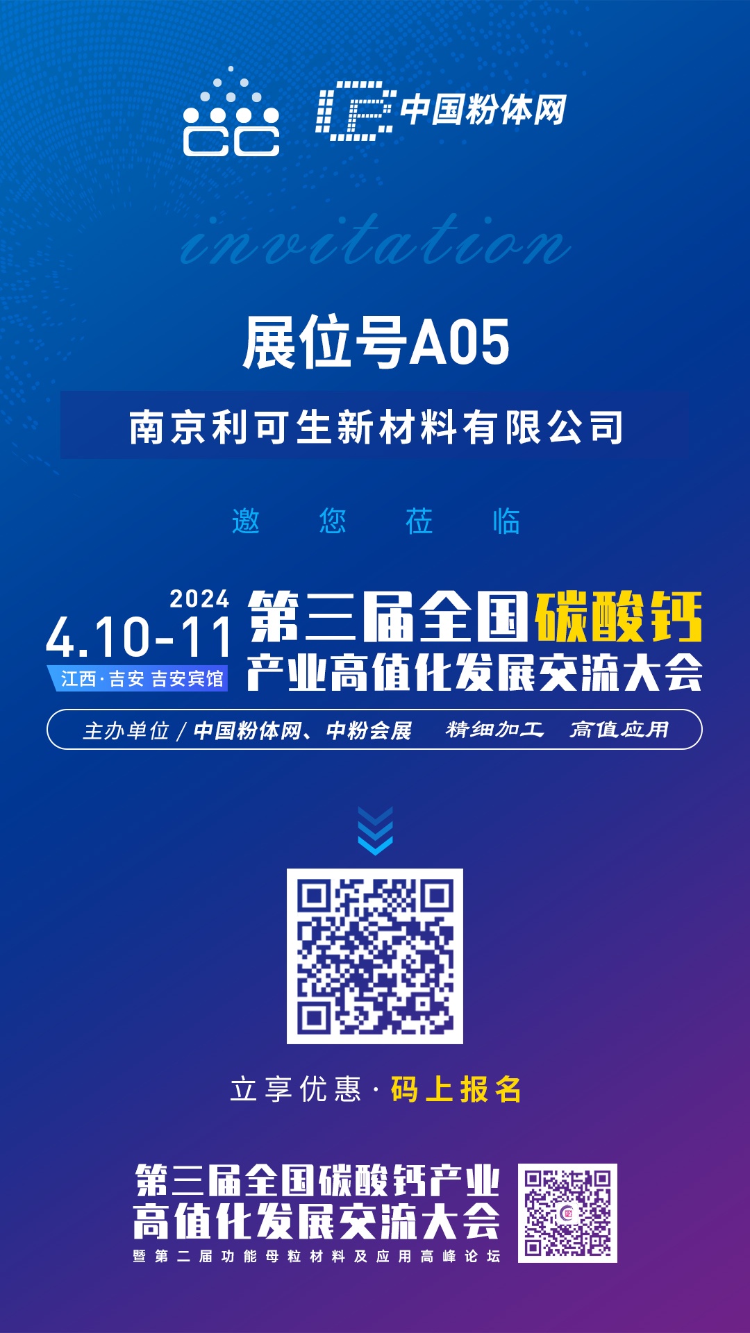 由中國粉體網主辦的“2024第三屆全國碳酸鈣交流會”將于2024年4月10-11號在江西吉安舉辦,南京利可生新材料有限公司邀您一同參加。