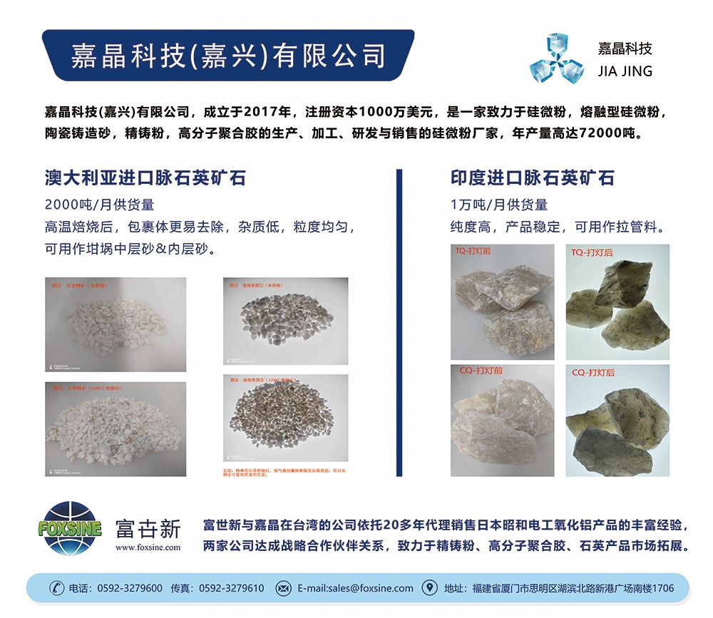 嘉晶科技(嘉興)有限公司,成立于2017年,注冊(cè)資本1000萬(wàn)美元,公司座落于浙江省嘉興市南湖區(qū)嘉興科技城內(nèi),占地2萬(wàn)平方米。是一家致力于硅微粉" style="margin: 0px; padding: 0px; text-decoration: underline; font-family: 微軟雅黑, " microsoft="" font-size:="" color:="">硅微粉,熔融型硅微粉,陶瓷鑄造砂的生產(chǎn)、加工、研發(fā)與銷(xiāo)售的硅微粉廠家,年產(chǎn)量高達(dá)72000噸。硅微粉是生產(chǎn)液晶玻璃基板和其他高新技術(shù)產(chǎn)品的主要原料,隨著液晶玻璃基板行業(yè)的快速增長(zhǎng),對(duì)其基礎(chǔ)原料硅微粉的質(zhì)量要求也越高。為了滿(mǎn)足硅微粉的市場(chǎng)需求,公司依托多年從事微粉行業(yè)已有的深加工技術(shù)和工藝,引進(jìn)先進(jìn)的德國(guó)進(jìn)口加工及研發(fā)設(shè)備,開(kāi)展硅微粉的深加工。