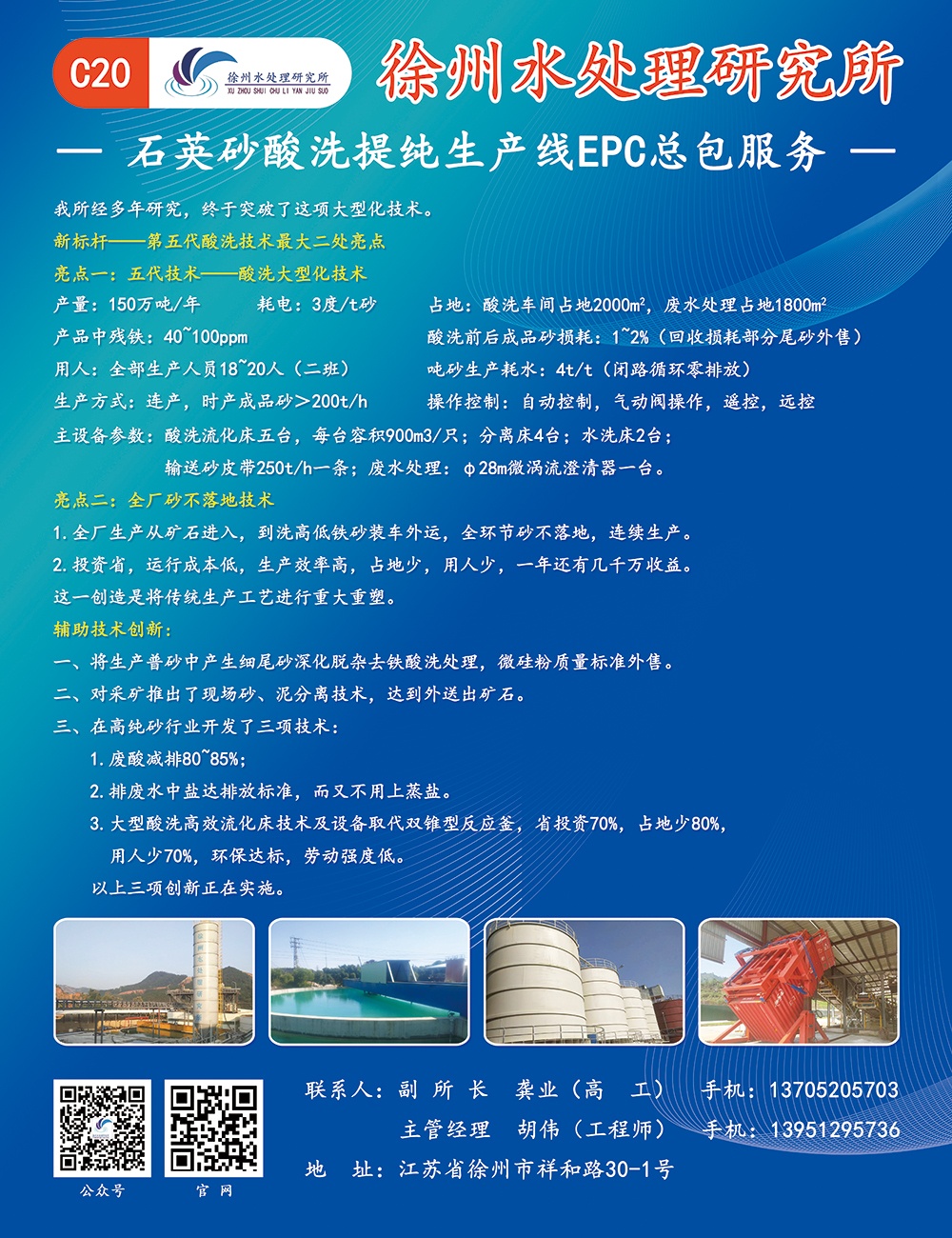 中國粉體網于2024年3月29日在安徽蕪湖舉辦“第二屆光伏行業用石英砂技術與市場交流大會”,徐州水處理研究所邀您一同參加。