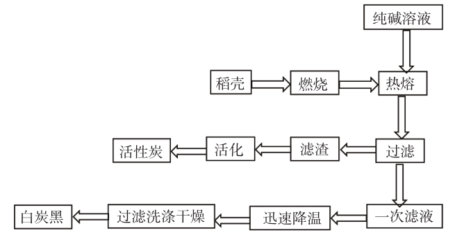 稻殼源白炭黑生產是采用稻谷加工剩余副產物稻殼為主要原料,先將稻殼經加工鍋爐分級燃燒和(或)氣化利用能量后,再將稻殼灰渣進行篩分、堿溶和酸析沉淀從稻殼灰渣中提取白炭黑,濾餅渣則經過處理制成活性炭,從而實現了稻殼的再資源化利用。