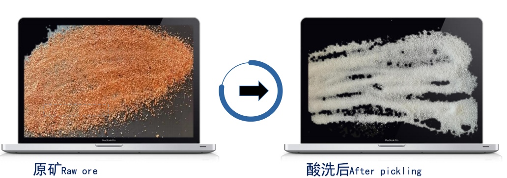 當然,酸洗全過程的時間并不是絕對的,酸洗時間會根據石英砂的質量以及客戶對酸洗產品的要求有所變化。除了上述因素,溫度、酸劑的選擇等也會影響石英砂的酸洗時間。此外,酸洗效果的好壞還跟酸液濃度、酸洗溫度、酸浸時間、加入順序和固液比等相關,其中,較高的酸洗溫度,較小的石英砂粒徑和較高的酸濃度都會提高鐵元素的去除效率。