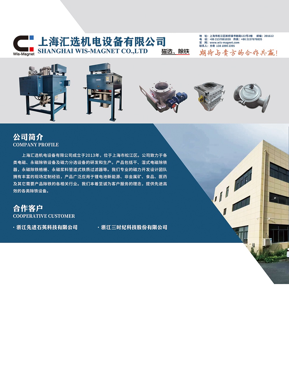 上海匯選機電設備有限公司是磁力除鐵器、磁力分選設備等產品的專業制造商。