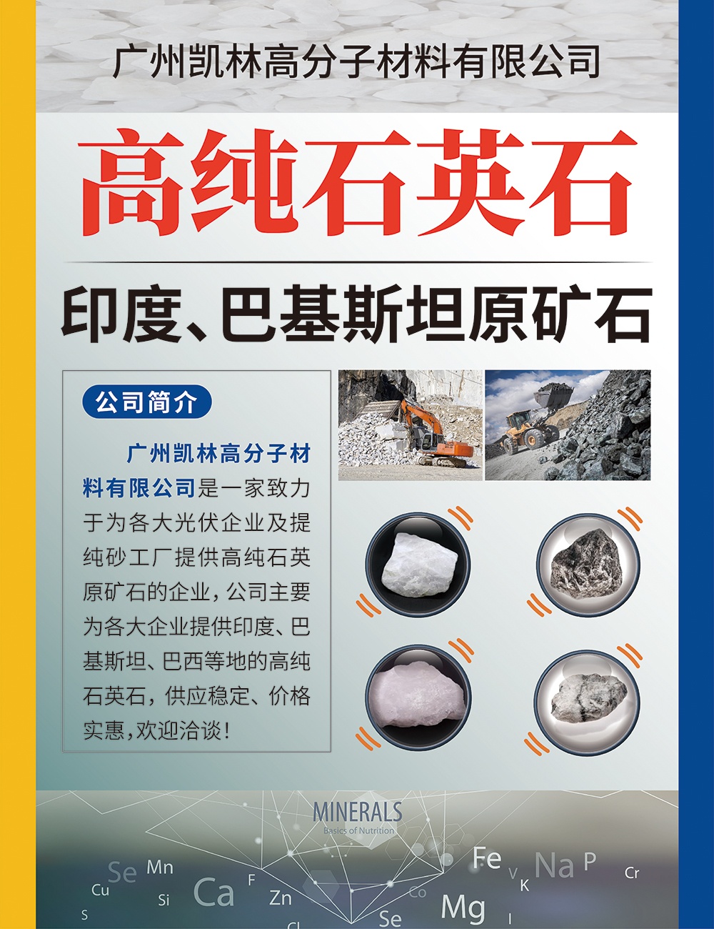 中國粉體網2024年3月29日安徽蕪湖舉辦“第二屆光伏行業用石英砂技術與市場交流大會”,廣州凱林高分子材料有限公司邀您一同參加。