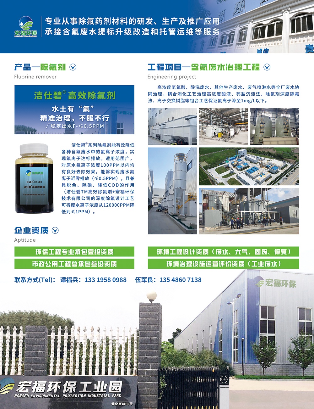 宏福公司總部坐落于古城長沙,在景色秀美的旅游勝地—岳麓山畔,并在望城區(qū)擁有占地50畝的環(huán)保工業(yè)園,下設(shè)宏福環(huán)保技術(shù)有限公司、湖南宏福智能環(huán)保科技有限公司、長沙宏福環(huán)保藥劑技術(shù)有限公司。具有環(huán)境工程(水污染防治工程、大氣污染防治工程、環(huán)境污染修復(fù)、固體廢棄物處理處置)專項設(shè)計資質(zhì)、環(huán)境工程專業(yè)承包壹級資質(zhì)、市政公用工程總承包叁級資質(zhì)、安全生產(chǎn)許可證等資質(zhì);通過了GB/T19001-2008質(zhì)量管理等體系認(rèn)證。GSEP是省級高新技術(shù)企業(yè)、長沙市創(chuàng)新力百強企業(yè)、湖南省環(huán)保協(xié)會常務(wù)理事單位、湖南省AAA企業(yè)信用企業(yè)、興業(yè)銀行授信單位。