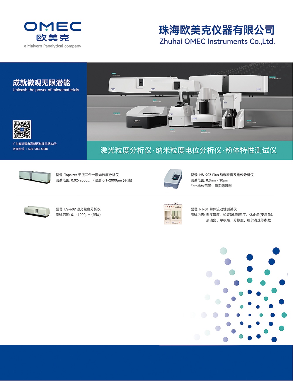 歐美克創立于1993年 ,是中國著名的顆粒測量儀器制造商、廣東省高新技術企業、軟件企業及廣東省粒度粒形分析儀器工程技術研究中心,具有深厚的測量理論研究功底和活躍的技術創新能力,取得多項專利及有價值的成果。歐美克的激光粒度分析儀被認定為火炬計劃項目和重點新產品,企業經營也卓有成效。