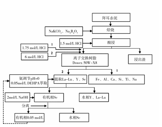 焙燒-酸浸-萃取法從赤泥中分離稀土元素的工藝流程