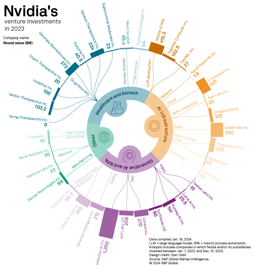 圖|英偉達2023年風投分布(來源:S&P Global)