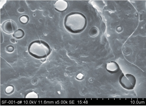 (2)顆粒粒徑過大或球形化程度差,會造成流延后膜內(nèi)的孔隙變大,導(dǎo)致透氣膜透水,嚴(yán)重時可能會產(chǎn)生斷膜。況且顆粒過大將會影響自身性能。