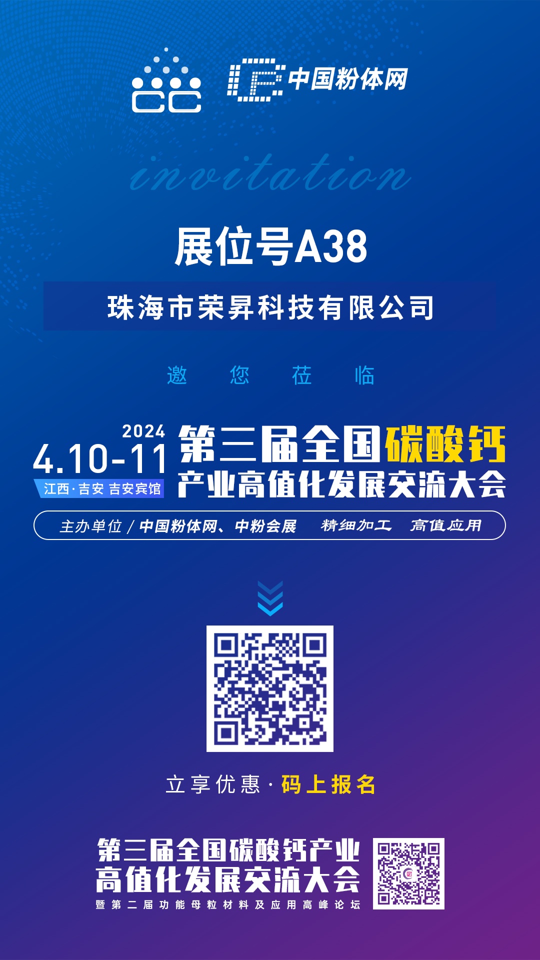 由中國粉體網主辦的“2024第三屆全國碳酸鈣交流會”將于2024年4月10-11號在江西吉安舉辦,珠海榮昇科技有限公司邀您一同參加。