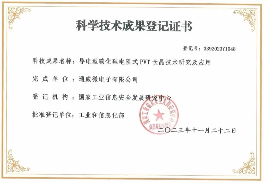 目前,通威微電子已形成從粉料合成、晶體生長到襯底加工的完整自主知識產權技術體系,技術成果經國家工業信息安全發展研究中心評價為:具有自主知識產權,總體技術達到國內先進,其中粉料制備技術達到國內領先。