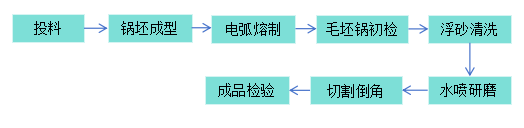 以自產高純石英砂等為原料,通過投料、鍋坯成型、電弧熔制、毛坯鍋初檢、浮砂清理、水噴研磨、切割倒角、成品檢驗等工序生產石英坩堝;