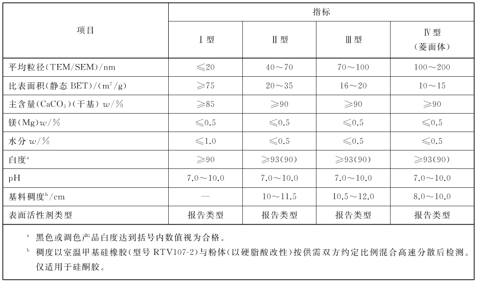 密封膠、膠黏劑用納米碳酸鈣推薦指標