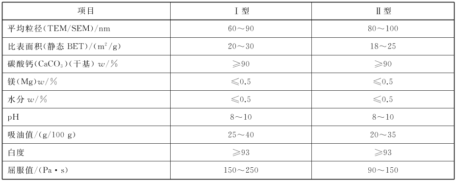 涂料用納米碳酸鈣推薦指標