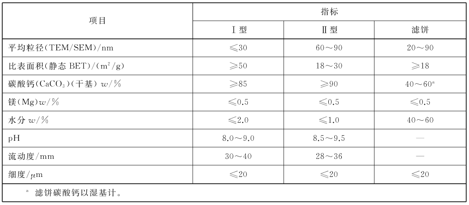 橡膠用納米碳酸鈣推薦指標