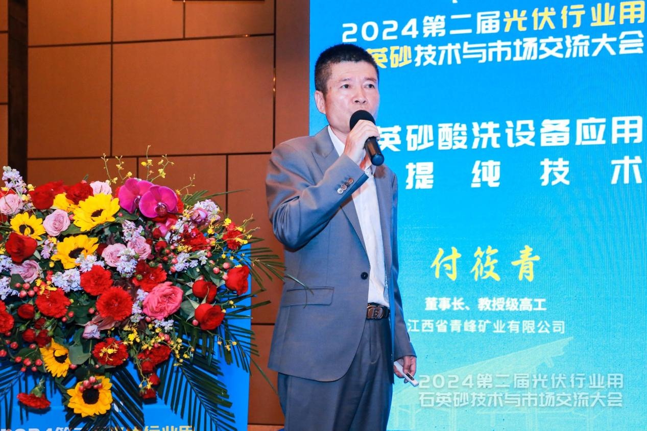 江西省青峰礦業(yè)有限公司付筱青董事長作《石英砂酸洗設(shè)備應(yīng)用與技術(shù)提純》報告