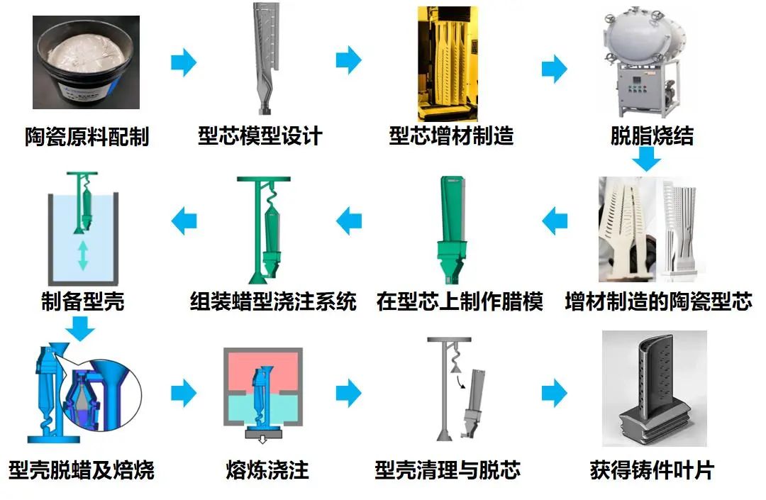 陶瓷3D打印技術為高效制備復雜結構陶瓷型芯提供了新的解決方案,并省去開模的周期和費用,可大幅降低成本。但目前國內的3D打印陶瓷型芯普遍存在尺寸精度差、坯體強度低、溶失性不好的問題,各項性能均不能滿足實際應用的要求,難以應用于復雜結構型芯的研制驗證以及型芯的批量化生產;且3D打印陶瓷型芯普遍存在固相含量較低、臺階效應明顯、脫脂易開裂等問題,導致高成型精度、結構復雜的硅基陶瓷型芯成型還有較大難度。