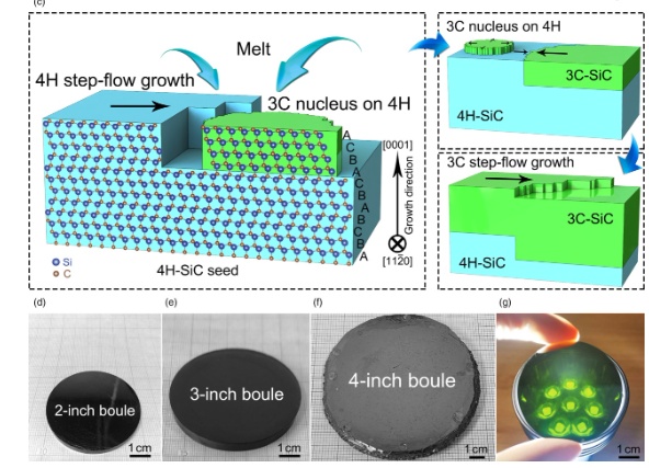 陳小龍團隊利用高溫液相法實現了2-4英寸、厚度4-10 mm、立方碳化硅晶體