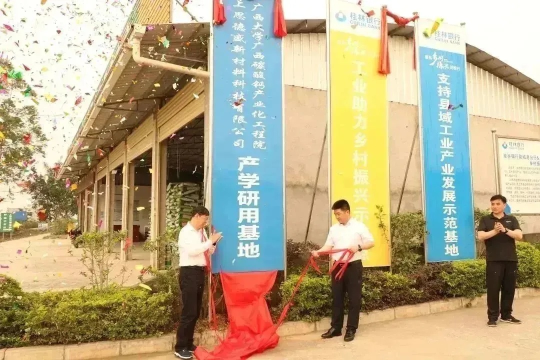 2023年4月4日,上思德盛新材料科技有限公司還與廣西大學(xué)廣西碳酸鈣產(chǎn)業(yè)化工程院聯(lián)合成立了產(chǎn)學(xué)研用基地。揭牌儀式上,上思德盛新材料科技有限公司董事長魏建榮表示,“產(chǎn)學(xué)研用基地”的成立,必將幫助公司破解生產(chǎn)技術(shù)難題,推動科研成果轉(zhuǎn)化,高速提升公司碳酸鈣深加工發(fā)展水平和市場競爭力,帶動上思縣碳酸鈣轉(zhuǎn)型升級,共同助推廣西精品碳酸鈣產(chǎn)業(yè)高質(zhì)量發(fā)展。