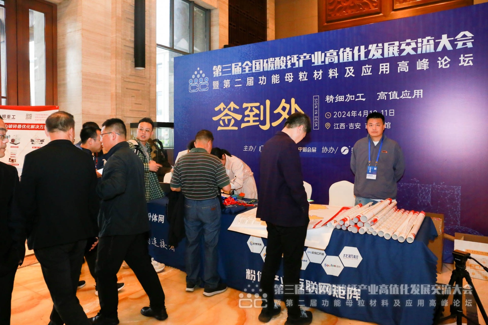 中國粉體網訊 4月10日,由中國粉體網主辦的“第三屆全國碳酸鈣產業高值化發展交流大會暨第二屆功能母粒材料及應用高峰論壇”在江西吉安隆重召開!本屆大會,聚焦碳酸鈣行業高質量發展的新機遇和新挑戰,共同探討“精細加工和高值應用”技術成果和市場訊息,積極尋求產學研用交流合作。出席本次大會的有碳酸鈣及非金屬礦行業知名的專家、學者,以及來自全國各地的企業家代表、協會代表、技術骨干及業界精英300余人。