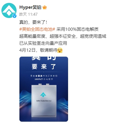 廣汽昊鉑此次提前兩年發(fā)布全固態(tài)電池,究竟會交出怎樣的答卷呢?所以,4月12日,搬好小板凳坐等發(fā)布會,看看昊鉑全固態(tài)電池的“真實水平”,是否能顛覆行業(yè)?