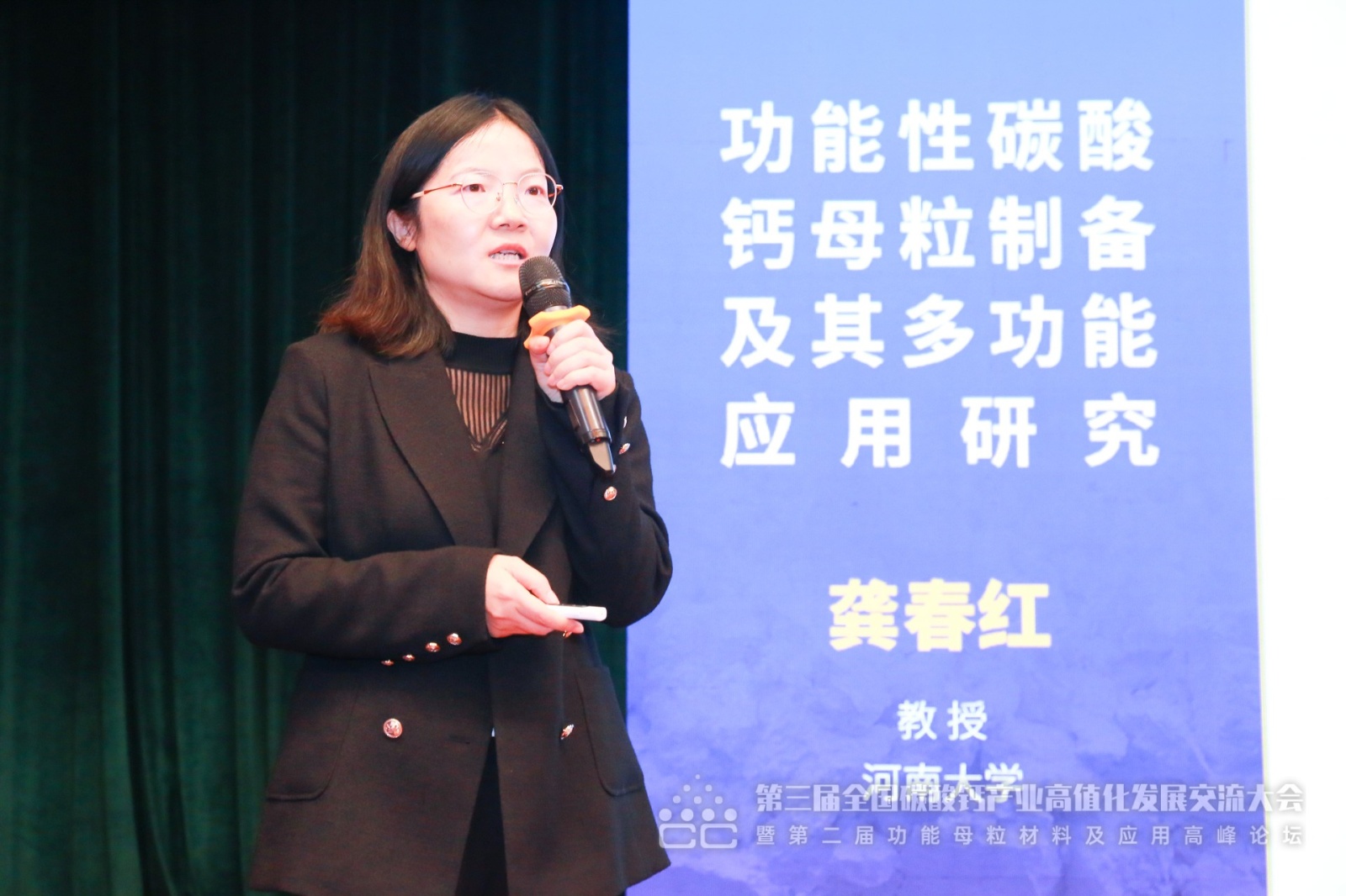 河南大學龔春紅教授介紹了碳酸鈣行業的發展現狀、碳酸鈣的活化改性及其應用、碳酸鈣功能母粒的制備及其應用、新型功能復合材料等一系列內容,并對活性碳酸鈣、母粒、功能型碳酸鈣的應用價值進行總結和展望。