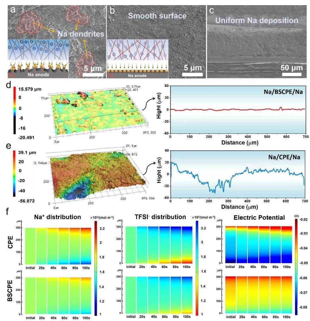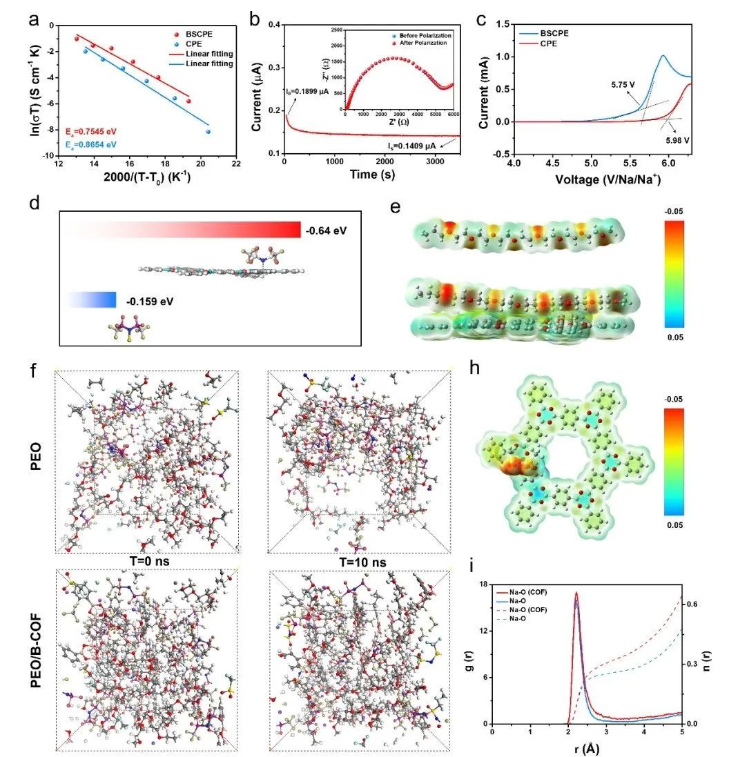 青鈉技術(shù)團(tuán)隊(duì)在鈉電領(lǐng)域擁有深厚的技術(shù)積累,聯(lián)合江南大學(xué)陳蘇莉教授科研團(tuán)隊(duì),成功開(kāi)發(fā)出“一種硼基共價(jià)有機(jī)框架(BCOF)網(wǎng)絡(luò)增強(qiáng)的高鈉離子選擇性聚合物復(fù)合電解質(zhì)(BSCPE)”和“一種氮化硼納米片增強(qiáng)的高鈉離子選擇性阻燃復(fù)合凝膠電解質(zhì)(AT-FCGE)”,兼具高離子傳導(dǎo)率、高鈉離子遷移數(shù)和良好界面兼容性,成功實(shí)現(xiàn)了高穩(wěn)定固態(tài)鈉金屬電池。