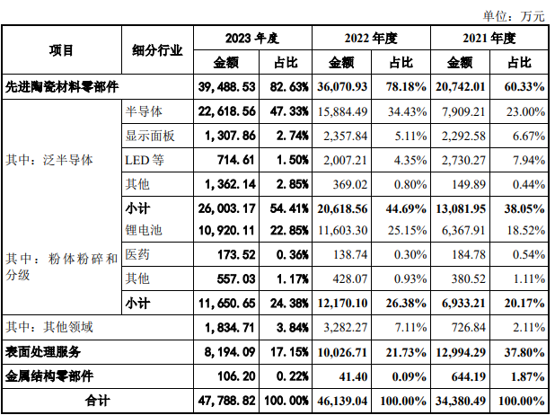 2023年?duì)I收4.8億元,半導(dǎo)體先進(jìn)陶瓷材料零部件收入占大頭