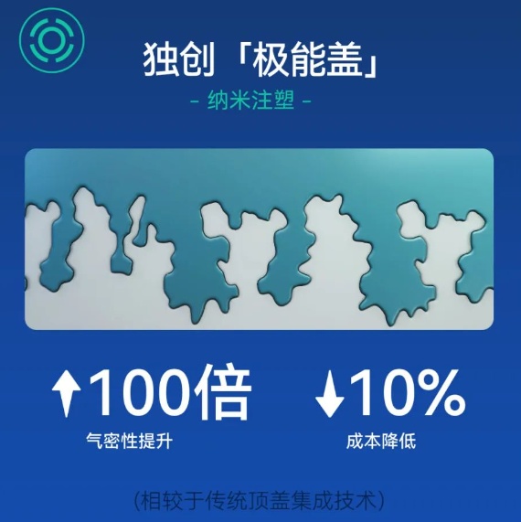 極能蓋:正力新能將傳統的氟橡膠密封圈設計升級為刻蝕納米注塑技術,相較于傳統的頂蓋集成技術,成本可降低10%;PPS與頂蓋、極柱表面形成納米級的錨栓結構和化學鍵結合,氦檢氣密性是傳統密封圈水平的100倍。
