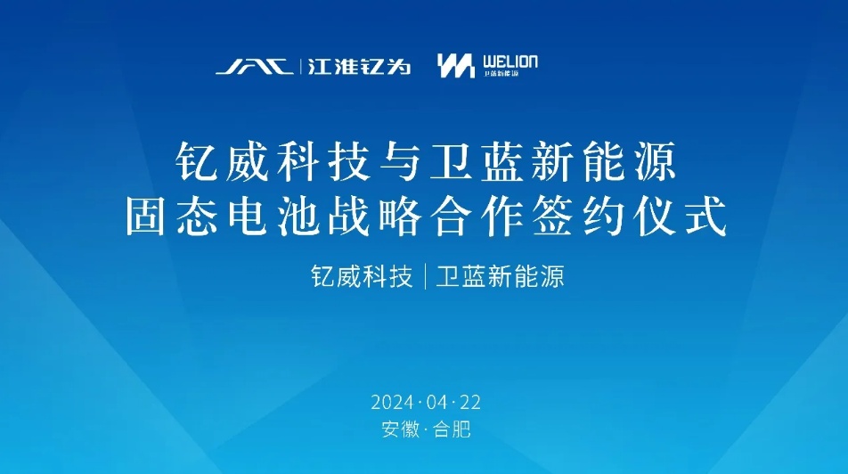 中國粉體網訊 4月22日,江淮釔為與衛藍新能源在合肥正式簽署固態電池戰略合作協議,雙方將合作開發4695大圓柱半固態電芯。